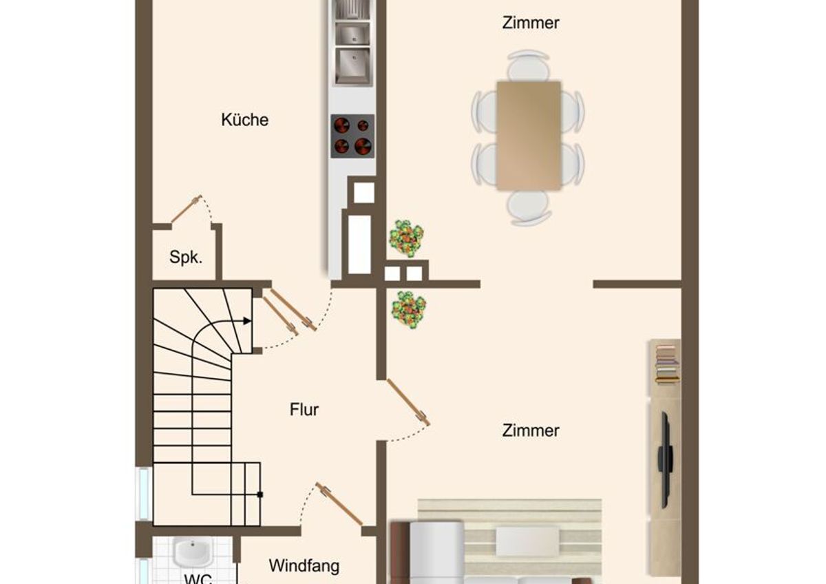 - Badezimmer im Obergeschoss, zusätzliches Gäste-WC im Erdgeschoss