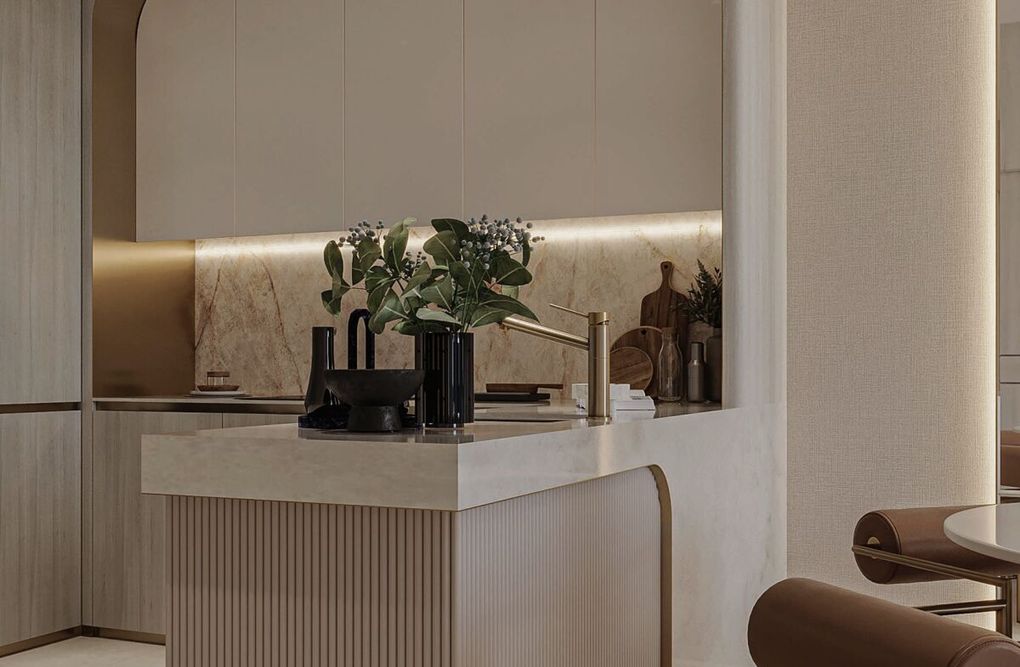 - Stilvolle Küchenzeile mit hochwertigen Oberflächen in eleganter Marmoroptik