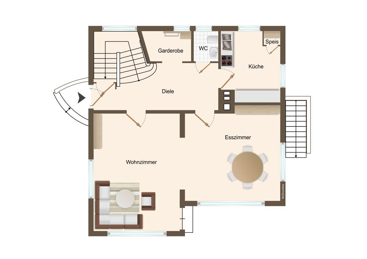 - Erdgeschoss mit ca. 47 m² großem Wohn-/ Essbereich als Herzstück der Immobilie