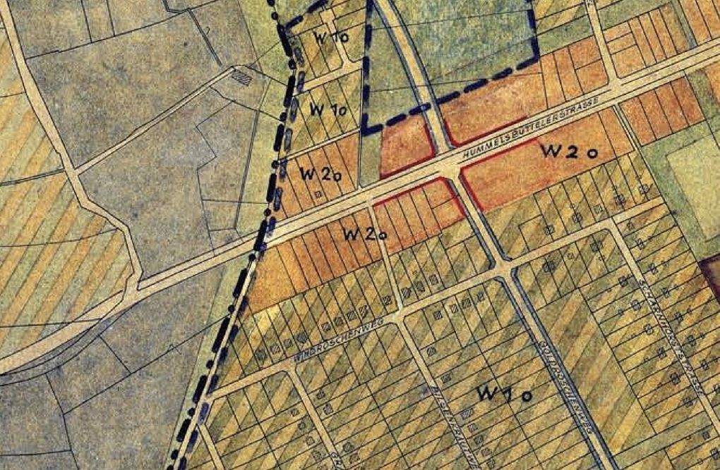 - Bebaubar nach dem Bebaustufenplan „Poppenbüttel“ aus dem Jahr 1955