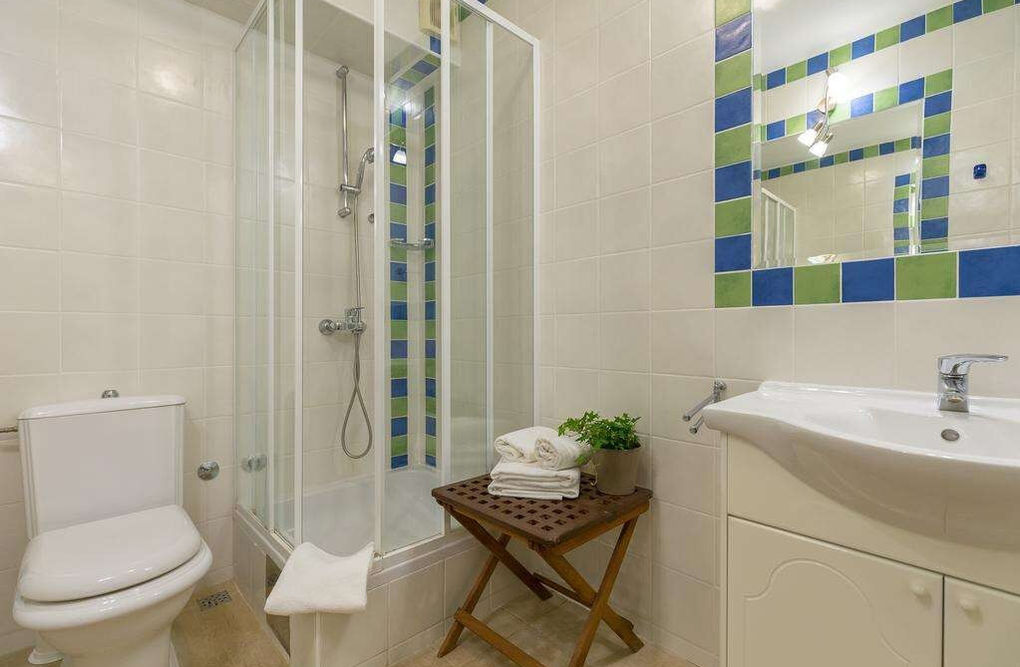 - Gornji kat: Tri spavaće sobe, kupaonica s tušem, dvije spavaće sobe s privatnim balkonom i pogledom na more, jedna s privatnom kupaonicom