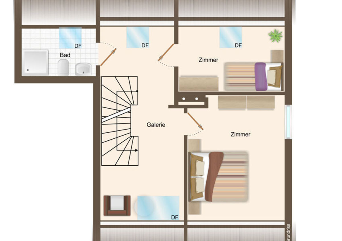 - Im Dachgeschoss befinden sich der Schlaf- und Arbeitsbereich mit Galerieebene, ein Schlafzimmer sowie ein Duschbad