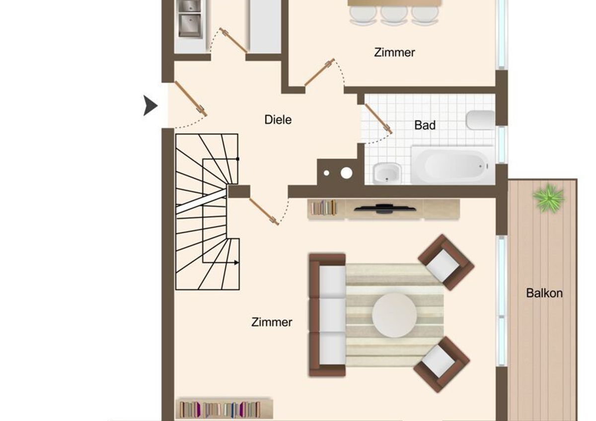 - Großzügige Maisonettewohnung mit ca. 92 m² Wohnfläche im 1. Ober- und Dachgeschoss eines kleinen Mehrfamilienhauses mit nur vier Wohneinheiten