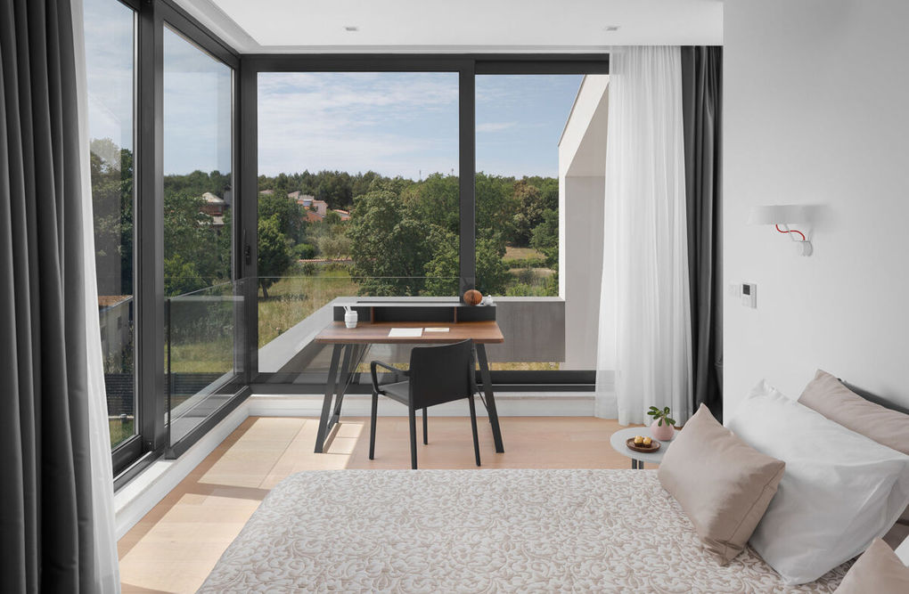 - Erdgeschoss: Wohn- und Esszimmer mit offener Küche, helles Schlafzimmer mit Bad en Suite, Gäste-WC