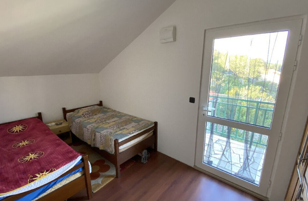 - Obergeschoss: Flur, zwei Schlafzimmer, Badezimmer, Außenterrasse