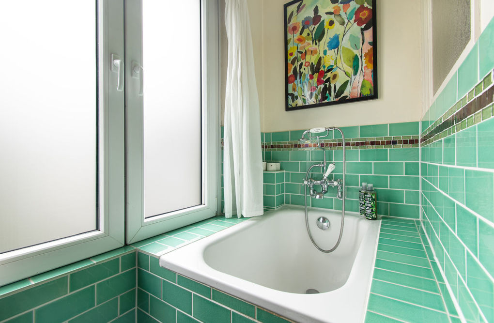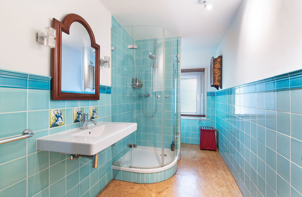 - Gäste-WC mit Dusche und Fenster im Eingangsbereich