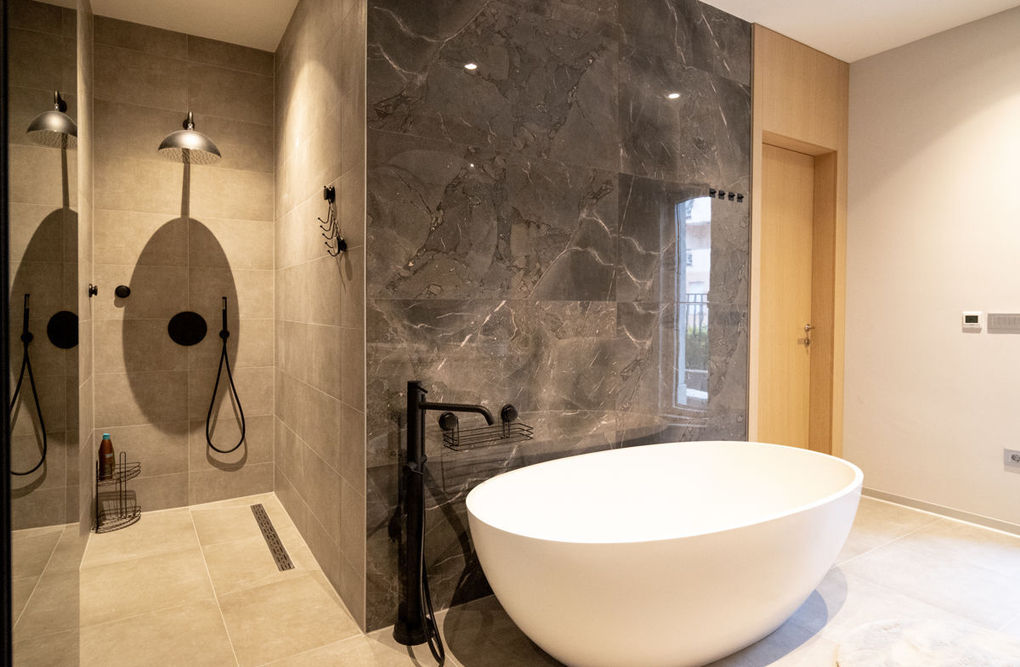 - Voll ausgestattete Küche, Schlafzimmer und Badezimmer mit Badewanne und begehbarer Dusche