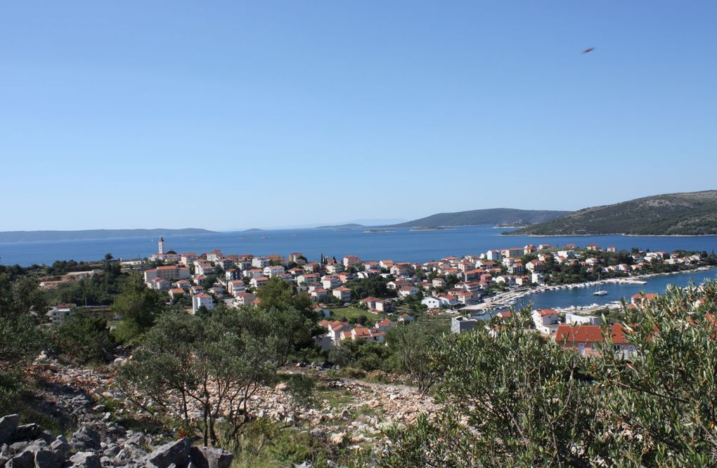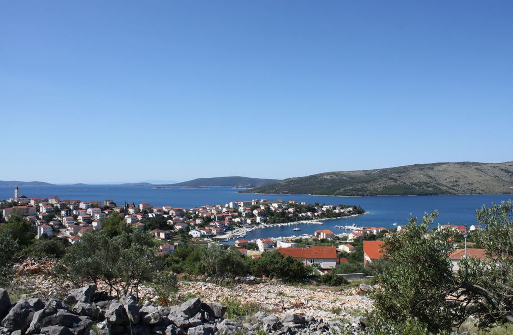 - Panoramablick auf Seget Vranjica, das Meer und die vorgelagerten Inseln