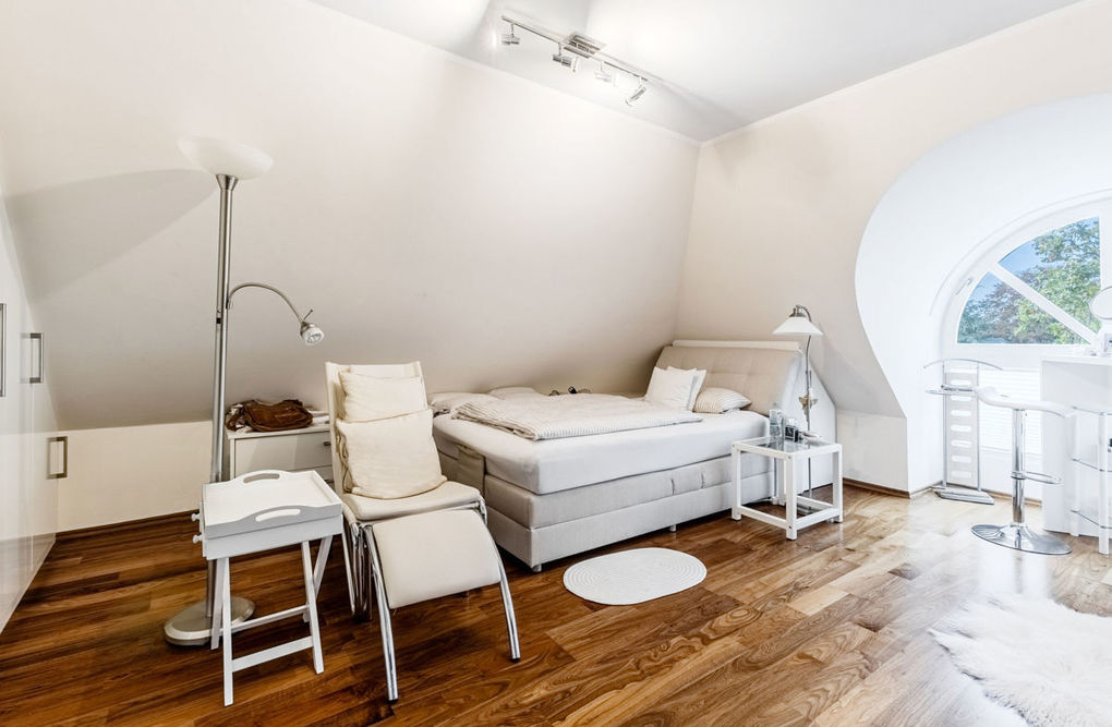 - Das große Schlafzimmer im 2. Obergeschoss ist mit einem edlen Einbauschrank ausgestattet und bietet Zugang zum Balkon