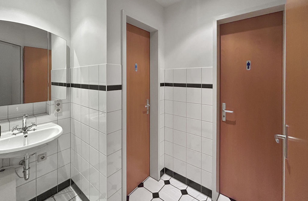 - Eine Küche mit Einbauküche, ein WC mit getrennten Kabinen sowie ein Serverraum