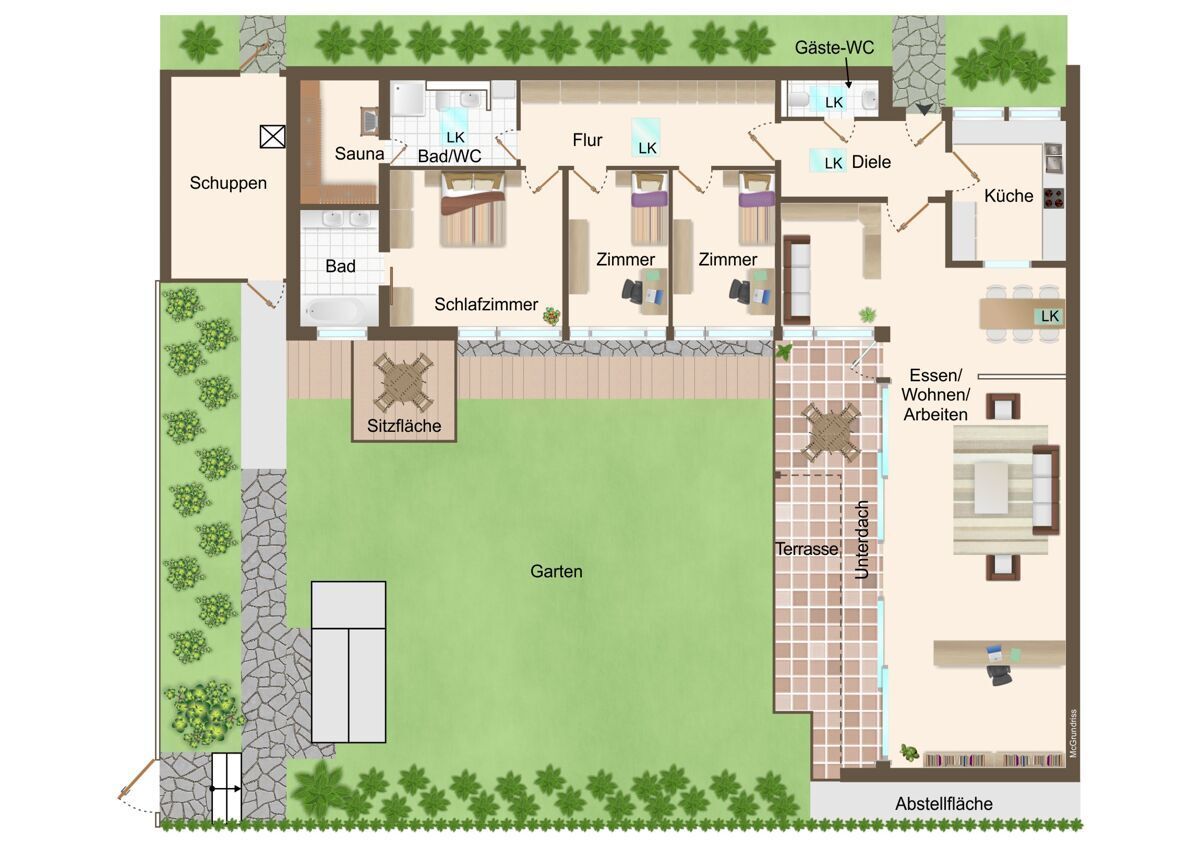 - Ca. 180 m² ebenerdige Wohnfläche mit barrierearmem Grundriss
