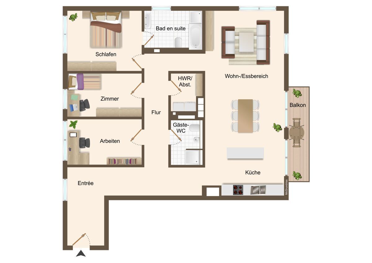 - Ca. 153 m² Wohnfläche verteilt auf vier lichtdurchflutete Zimmer mit idealem Grundriss